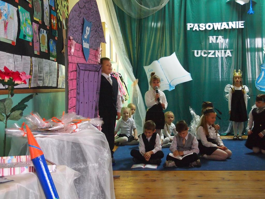 Tegoroczne uroczystości rozpoczęła część artystyczna w wykonaniu pierwszaków, które z pszczółek zamieniały się w uczniów i zdawały egzamin przed Profesorem. Następnie, po złożeniu przysięgi, bohaterowie ślubowania zostali przez panią dyrektor Beatę Kubacką pasowani na uczniów Szkoły Podstawowej. Każdy z pasowanych otrzymał legitymację szkolną oraz dyplom okolicznościowy. Życzenia młodym uczniom oraz upominki wręczyli zaproszeni goście.