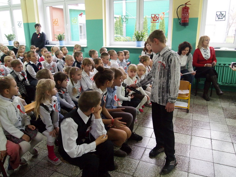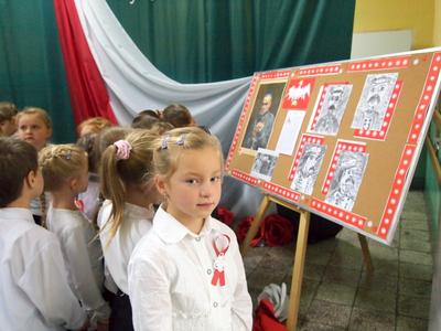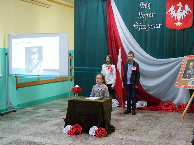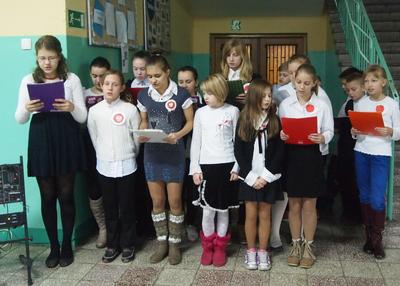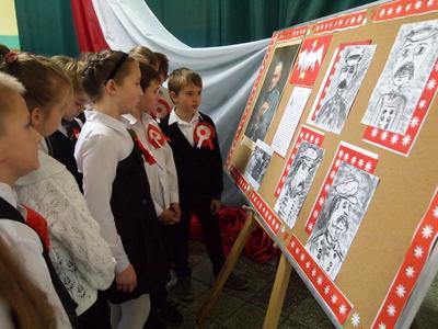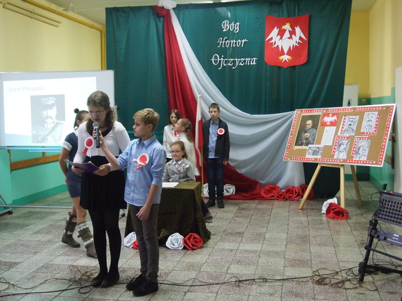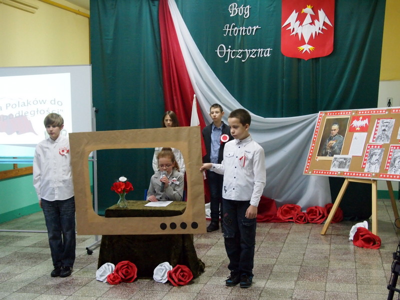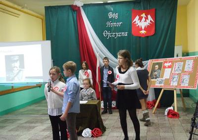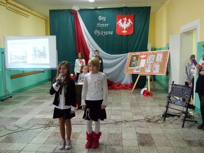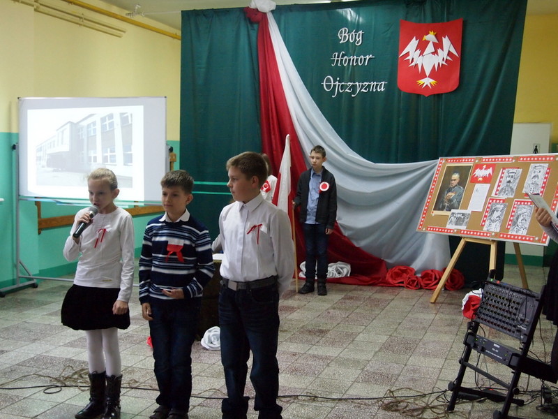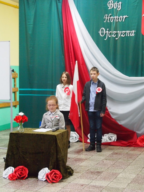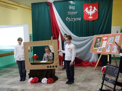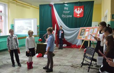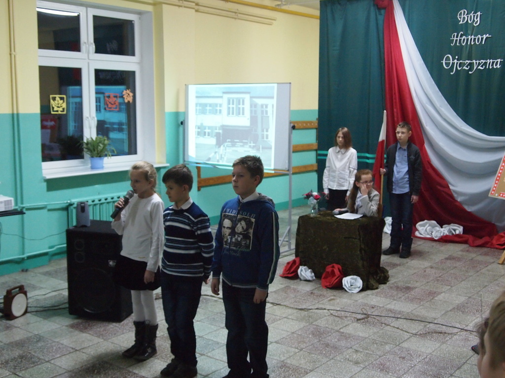 Uczniowie klas IV-VI przygotowali z tej okazji inscenizację. Występ urozmaiciły śpiewy szkolnego chóru wykonujacego pieśni patriotyczne oraz prezentacja multimedialna.