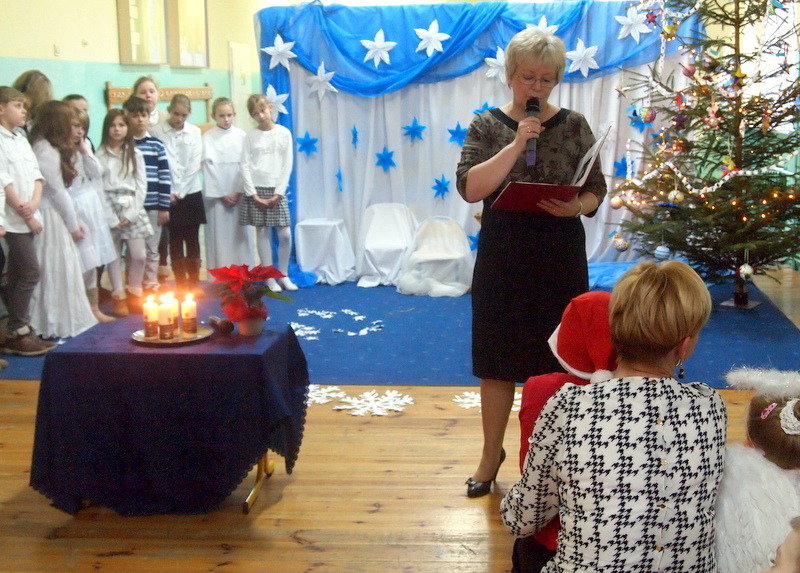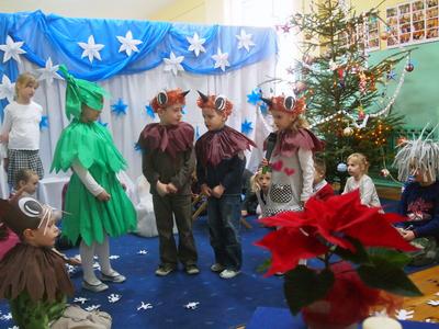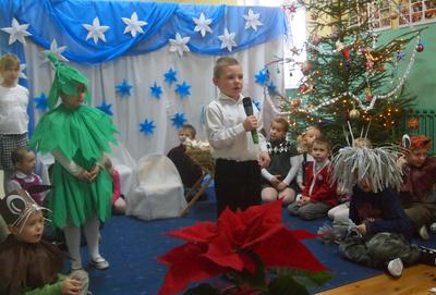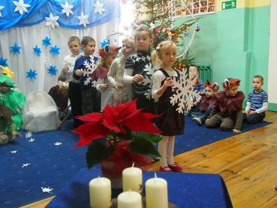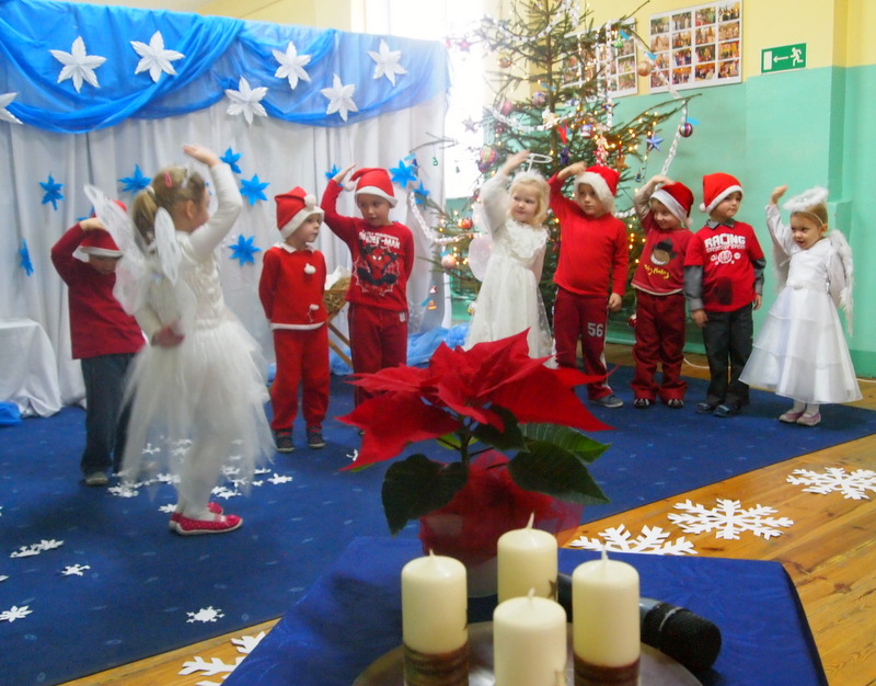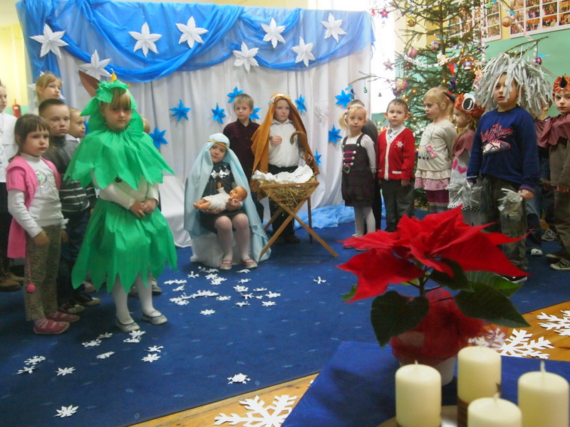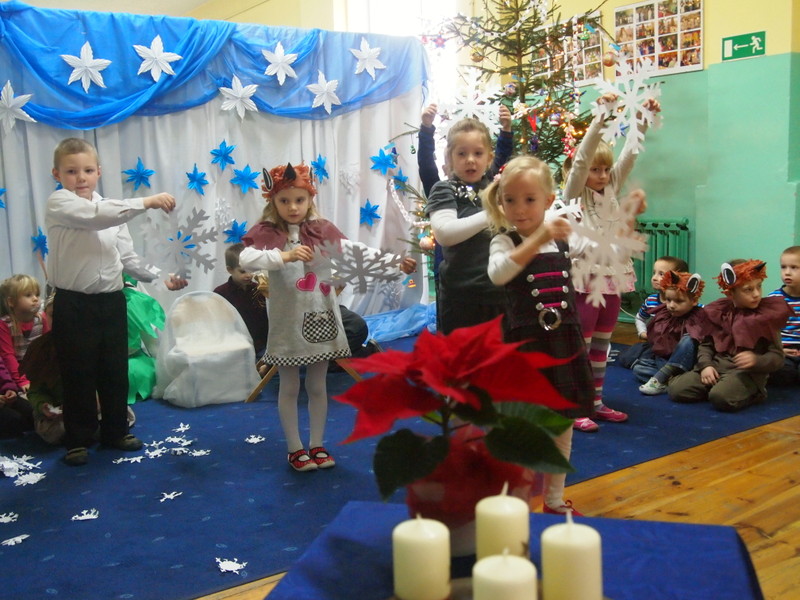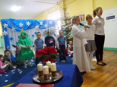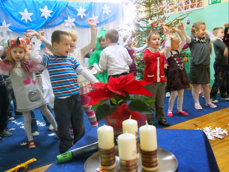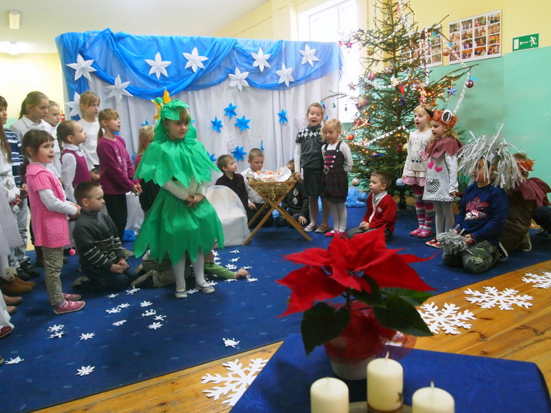 Dnia 20 grudnia 2012 r. w niepowtarzalnej atmosferze, odbyło się w naszej szkole spotkanie świąteczne. Przedszkolaki pod opieką swoich wychowawczyń zaprezentowały program słowno – muzyczny dotyczący historii choinki oraz tradycji świąt Bożego Narodzenia. Występ urozmaiciły śpiewy chórku szkolnego oraz popisy taneczne maluszków. Na zakończenie pani dyrektor Beata Kubacka opowiedziała piękną przypowieść o czterech świecach adwentowych oraz złożyła wszystkim świąteczne życzenia.