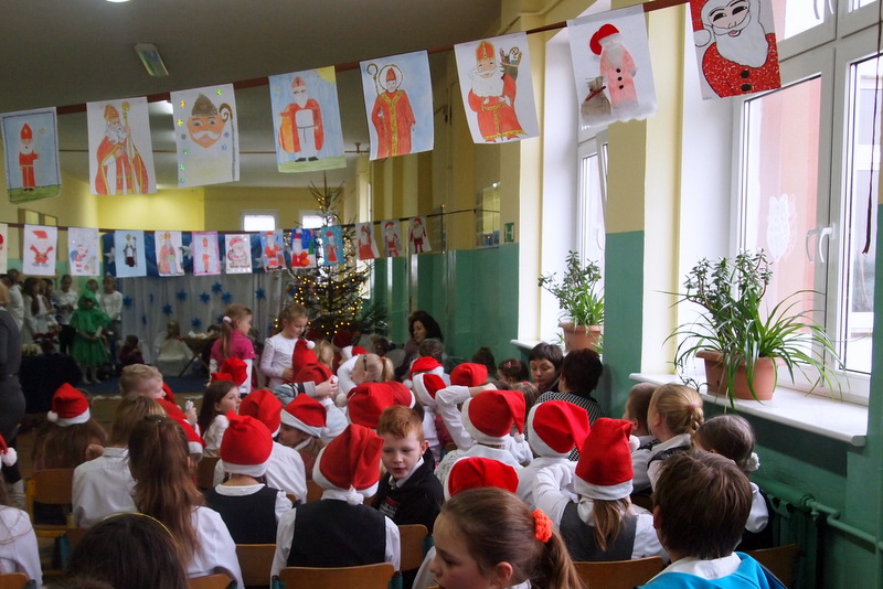 Tego dnia w szkole, przy dźwiękach kolęd i zapachu, choinki odbyły się też klasowe spotkania wigilijne połączone z dzieleniem się opłatkiem. Tradycyjnie do uczniów z klas I – III przybył gwiazdor, któremu poszczególne klasy zaprezentowały krótkie programy artystyczne. Po występach wszystkie dzieci otrzymały od gwiazdora świąteczne upominki.